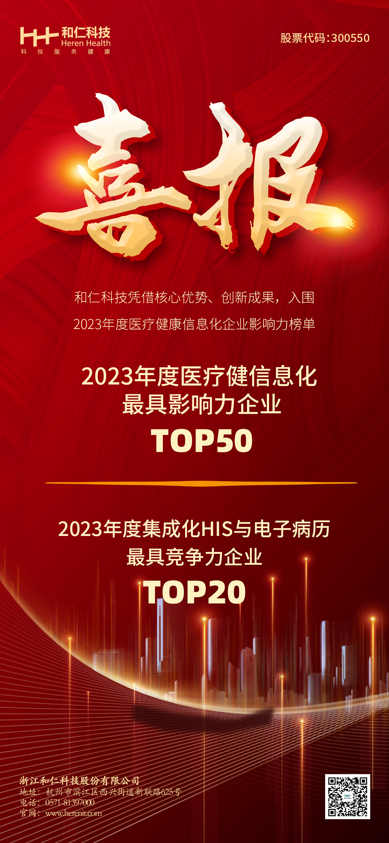 第二屆醫療健康信息互聯互通與智慧醫院建設大會于11月17日順利召開,華中科技大學信息醫學研究所和中國衛生信息管理雜志社在大會上聯合發布了2023年度醫療健康信息化企業影響力榜單,浙江和仁科技股份有限公司(以下簡稱“和仁科技”)上榜。