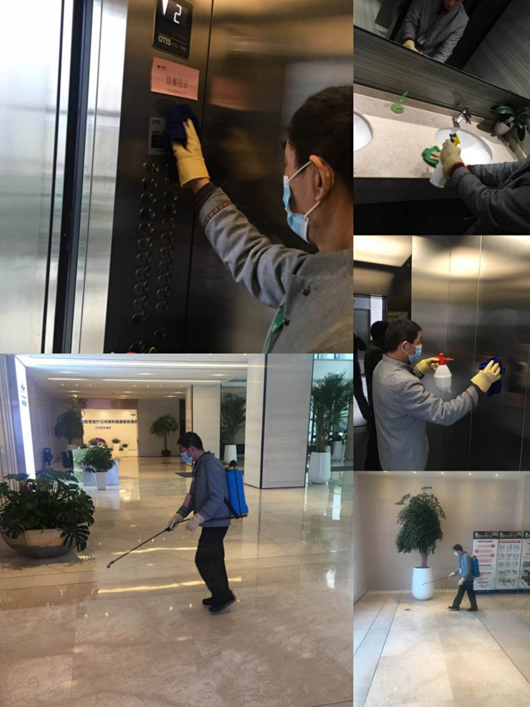 復(fù)工期間,和仁科技大廈公共區(qū)域(大堂、展廳、各樓層茶水間、樓道、地下車庫、電梯間等)進(jìn)行噴灑消毒。針對門把手、開關(guān)、電梯按鍵等頻繁交叉使用區(qū)域加強(qiáng)消毒頻次。工作組建立全員晨檢、夕查機(jī)制篩查體溫,為員工配備醫(yī)用口罩、配置消毒液等公共應(yīng)急物資,并設(shè)立醫(yī)用口罩集中回收點(diǎn)等,所有服務(wù)人員將全天佩戴口罩工作,建立疫情防控消殺管理日志。