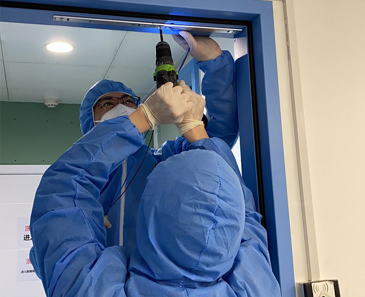 在武漢同濟(jì)醫(yī)院中法新城院區(qū)被指定成為“武漢市新型冠狀病毒感染的肺炎危重病人救治定點(diǎn)醫(yī)院”后,為滿足包含傳染病區(qū)等在內(nèi)的20個(gè)病區(qū)共計(jì)1000張床位的管控要求,以及光谷院區(qū)的830張床位的改造需求。和仁科技服務(wù)團(tuán)隊(duì)立即組織、協(xié)調(diào)資源,安排施工計(jì)劃和施工方案。同時(shí),為保障項(xiàng)目高質(zhì)量、高標(biāo)準(zhǔn)完成,增派工程師駐場(chǎng)溝通、協(xié)調(diào)施工方案細(xì)節(jié)。和仁科技服務(wù)團(tuán)隊(duì)克服時(shí)間緊、材料缺、施工難度大等問(wèn)題,歷時(shí)兩天完成光谷院區(qū)的病房改造工作,六天完成中法新城院區(qū)的病房改造工作。